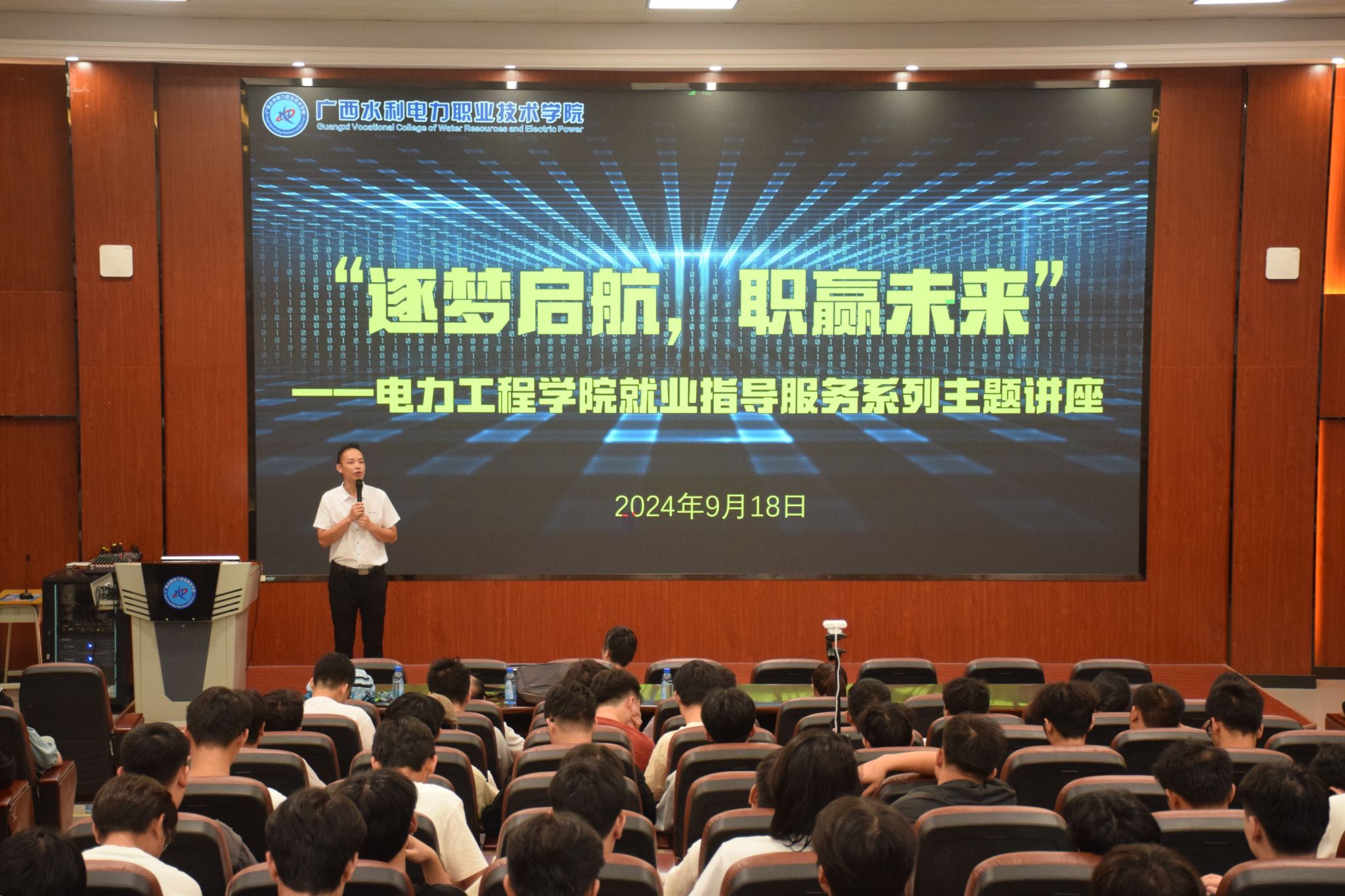 [本网讯]为进一步推动学院就业指导服务工作,增强学生的生涯规划与职业发展意识,引导学生了解就业形势,认清就业方向,明确就业目标。9月18日晚,电力工程学院举办就业指导服务系列主题讲座,本次讲座通过线上线下形式开展,邀请优秀班主任钟秋老师主讲,全体2025届的毕业生、班主任、辅导员聆听讲座。
