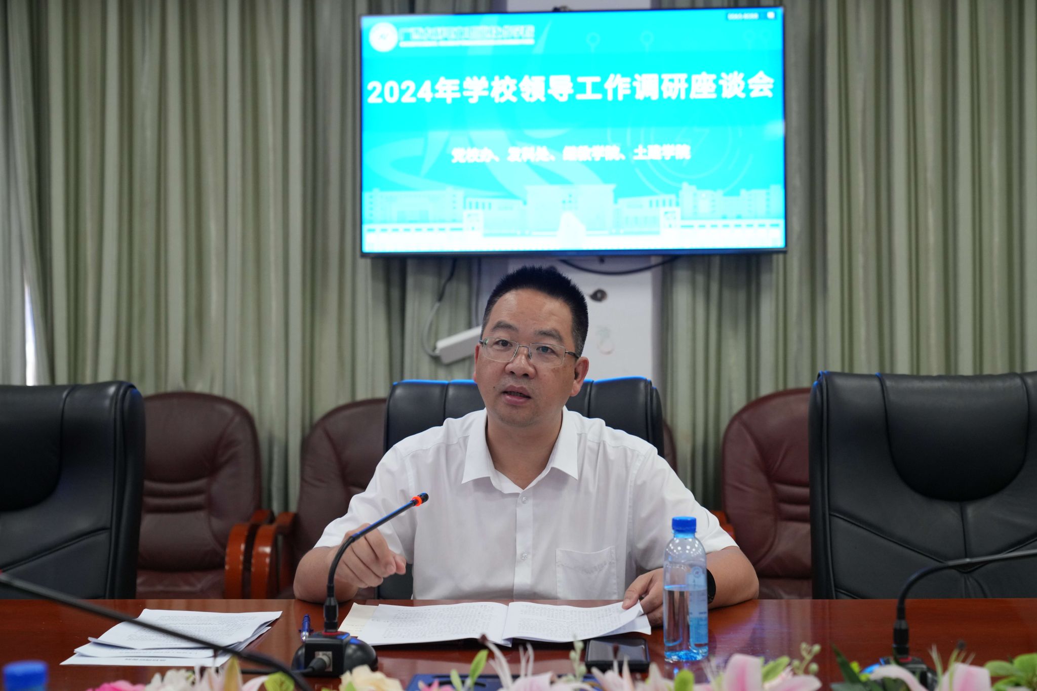 [本网讯]7月1日上午,学校副校长周涛深入党校办、发科处、继教学院、土建学院,以座谈交流的方式开展调查研究并指导工作。座谈会在长堽校区办公楼三楼会议室举行,党校办主任黄海滨主持会议。