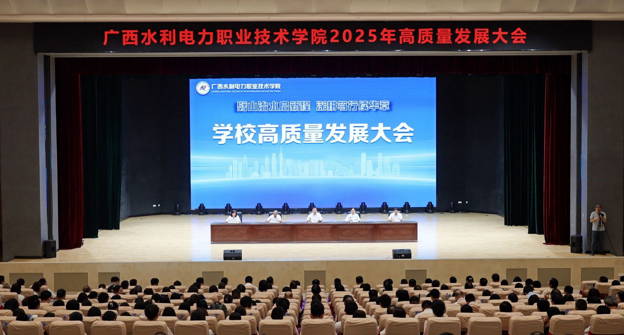 [本网讯]近日,学校在里建校区大学生活动中心报告厅举行2025年高质量发展大会。学校党委书记李林出席会议并讲话,学校党委副书记莫海燕、纪委书记邓文勇、副校长周涛、总会计师潘念萍等在家校领导及全校教职工参加大会。大会由学校党委副书记莫海燕主持。