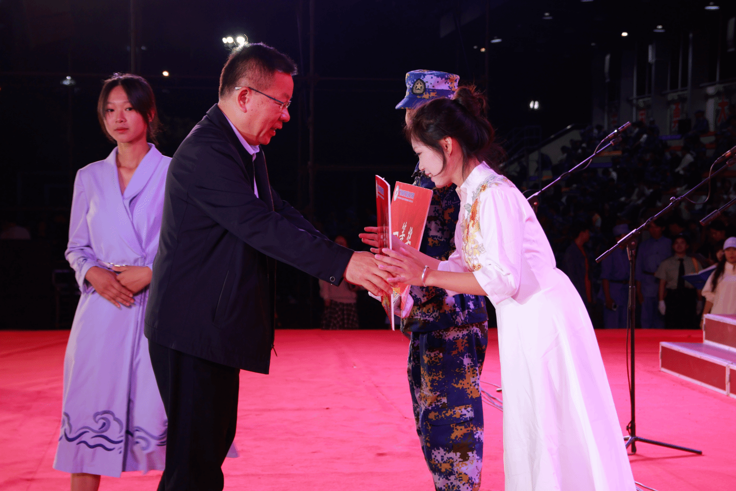 [本网讯]11月14日晚,学校里建校区运动场华灯璀璨、歌声嘹亮,“迷彩青春扬正气·清韵华章聚同心”——2025级新生合唱暨朗诵比赛在此顺利举行。学校党委书记李林出席比赛现场并致辞。