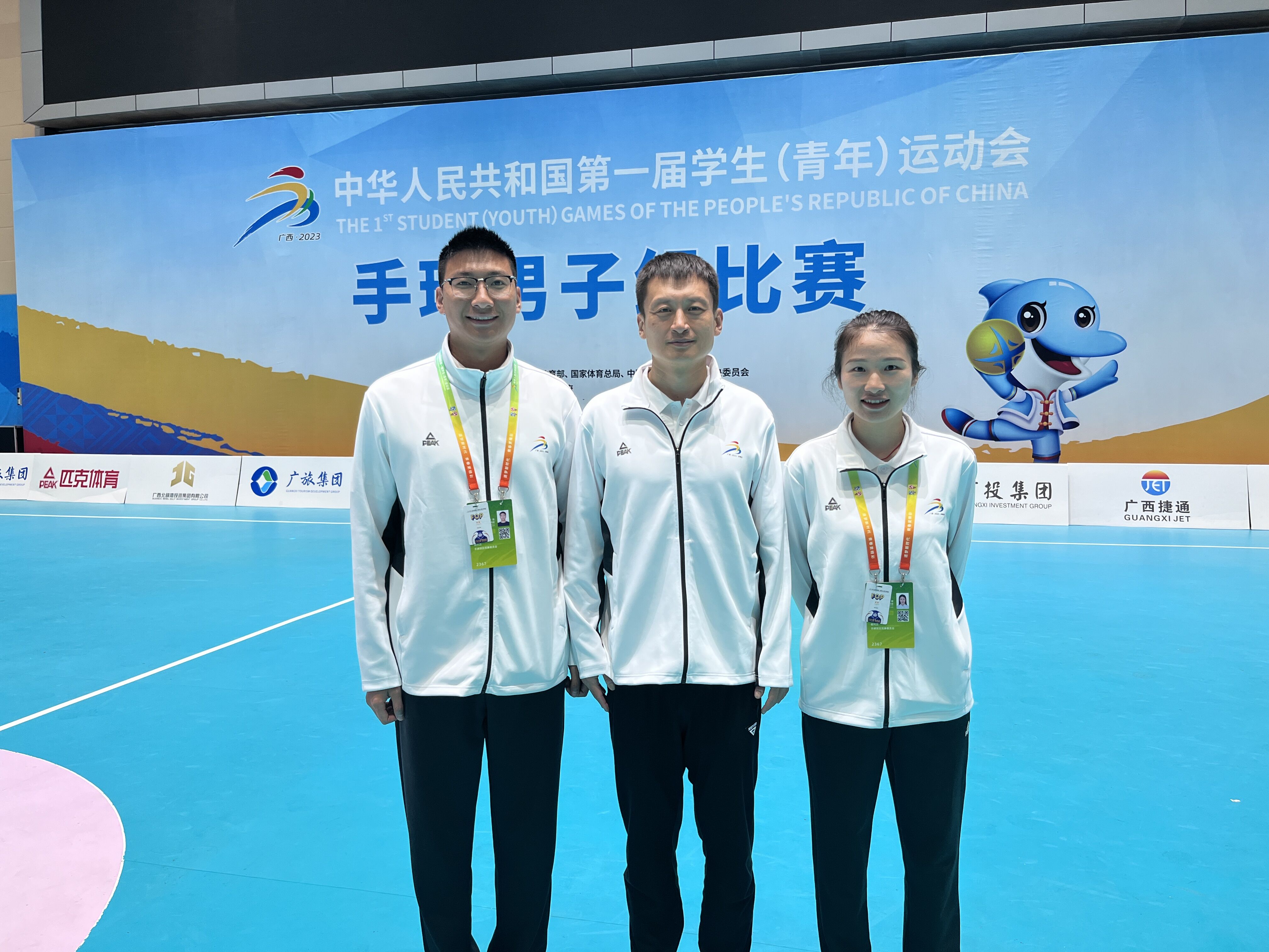 [本网讯]由中华人民共和国教育部和国家体育总局主办,广西壮族自治区人民政府承办的第一届全国学生(青年)运动会于2023年11月5日在广西南宁隆重开幕,共有来自全国各地101个代表团的20360名运动员踏上青春的赛道,追逐梦想,拼搏奋斗,伟德通识教育学院国家级篮球裁判员贾东、手球二级裁判员喻皖临和邓思佳经过层层选拔,最终作为第一届学生(青年)运动会篮球和手球项目的裁判员为赛事服务。