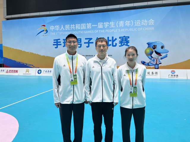 贾东老师作为国家级篮球裁判员有着丰富的篮球赛事执教经验和执裁经验。去年带领学校篮球队参加中国大学生篮球联赛广西预选赛,以广西第二名的成绩代表广西参加今年全国大学生篮球联赛西南赛区获得第八名的好成绩。他本人先后担任全运会预赛、全国大学生篮球联赛、广西壮族自治区青少年篮球赛等全国或全区性的大赛裁判工作,积累了丰富的经验,以专业的素养和严谨的态度深受赛事主办单位好评。而喻皖临和邓思佳作为去年入校的新进教师,将对体育的热爱和对工作的热情转化成了学习和进步的动力,在工作之余积极参加赛事实践,通过在赛场上对手球技巧的实践掌握,学透、摸透、悟透比赛规则,入校没多久就取得了手球二级裁判员资质,这次顺利入选青运会执裁,参与手球比赛的计时、记录和技术统计工作,专业及时地捕捉赛场攻防变化,为赛事提供数据和服务支持。