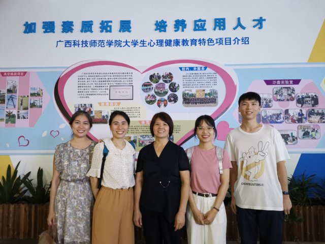 会后,伟德心理任课教师在覃干超书记和黄群瑛教授带领下,参观广西科技师范学院心理健康教育与研究中心,了解了学院心理健康教育工作的开展情况。