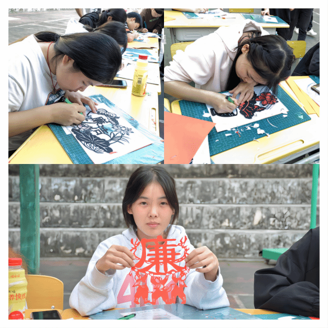 活动上,同学们跟随老师的讲解和手法,或叠或剪或修,循着“廉”“莲”等关键词进行裁剪、雕刻,将“廉”用艺术的转化手法剪刻出来,从而体会“廉”的形与意。同学们在完成制作后,纷纷拿着自己的作品互相交流、欣赏,感受廉文化带来的精神意趣和传统剪纸艺术的魅力。
