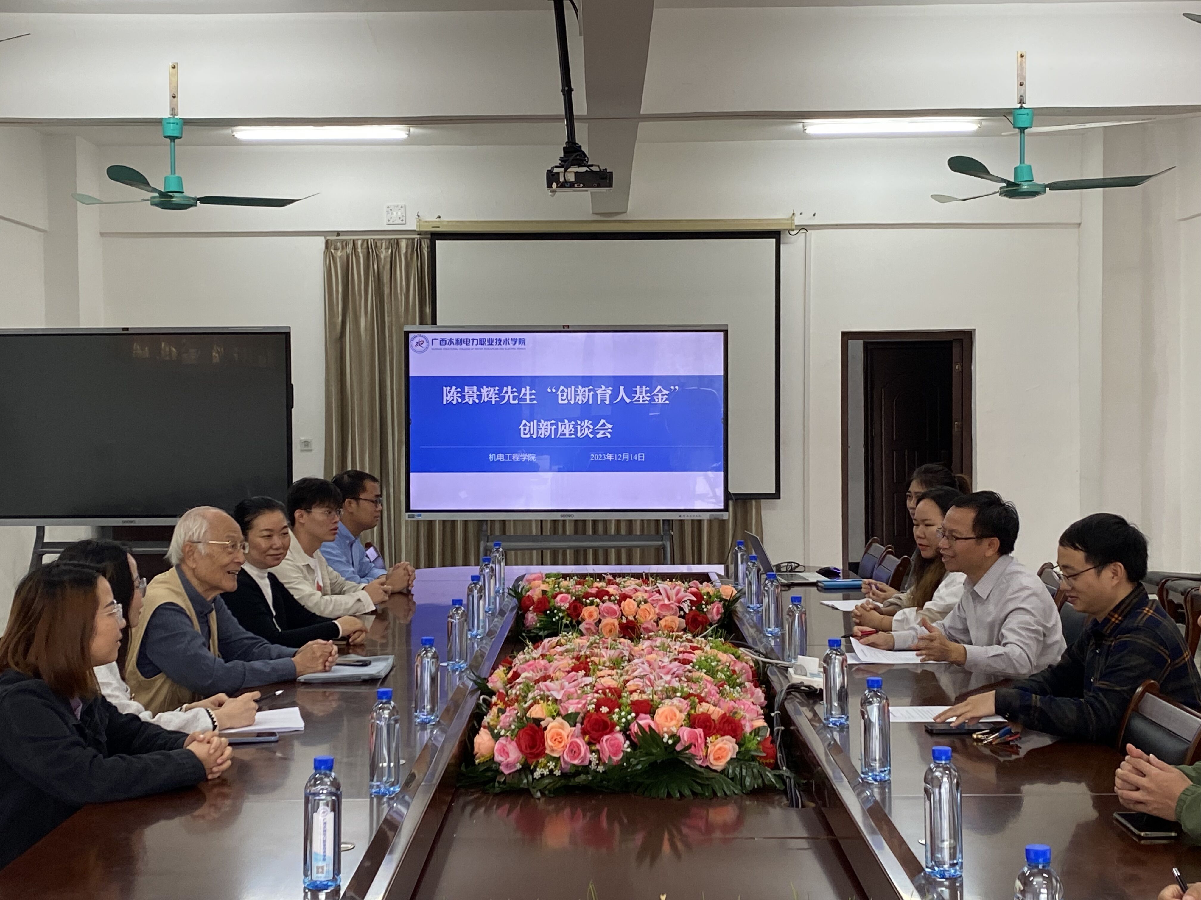 [本网讯]12月14日上午,机电工程学院在里建校区综合实训楼会议室举办“创新育人基金”创新座谈会,机电工程学院院长陆尚平博士、“创新育人基金”捐赠人陈景辉老先生、机电工程学院创新创业骨干教师代表、辅导员等参加座谈。