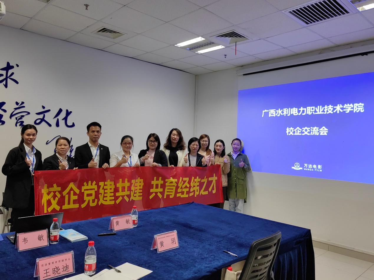 [本网讯]推进毕业生更充分更高质量就业,对接企业用人需求,拓宽毕业生就业渠道和资源,12月13日下午,经济管理学院副院长王晓迪、市销团队负责人李晓颖、工商企业管理专业负责人黄玥与学校教务处老师等人一行赴南宁万达国际电影城有限公司开展校企合作交流座谈。