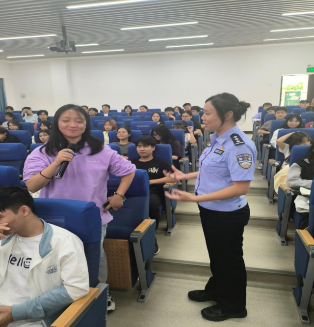 兴宁所石可君教官通过身边发生的案例,给与会师生详细讲解和阐述了诈骗手段的发展、如何识别电信网络诈骗、如何避免陷入电信网络诈骗“不理睬、不点击、不轻信、不泄露、不转账”的“五不”要素。活动中,还邀请部分同学讲述“发生在我身边的诈骗活动”,谈心得,谈体会,共分析,同分享。最后,还举办了现场法律知识咨询、“防电信网络诈骗”资料发放活动。本次活动,得到参与师生的一致好评。