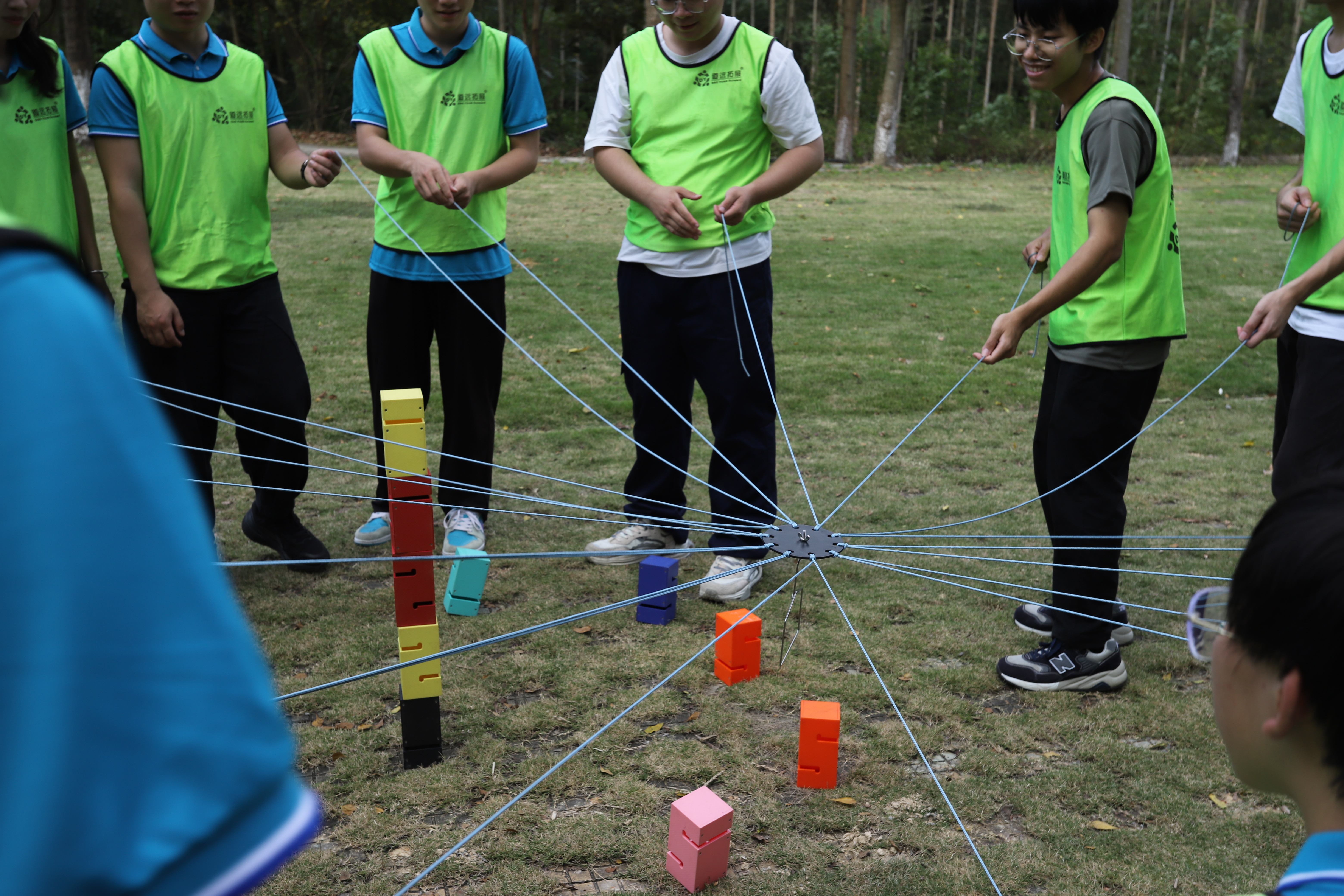 活动围绕“凝心聚力筑梦想 励志笃行创未来”主题,通过团队活动打破壁垒,促进深度沟通和合作,提升学生的综合能力。活动设置“团队破冰”“燃青春”“筑梦想”“共突破”四个环节,包含团队按摩操、同心圆、十人九足、合力搭塔、高空断桥、高空抓杠和毕业墙等近十种素质拓展项目,充分考验同学们的体力、毅力、创造力、心理承受能力和团队合作精神。经过教练的指导和团队协作,所有同学均能突破自我,完成挑战。
