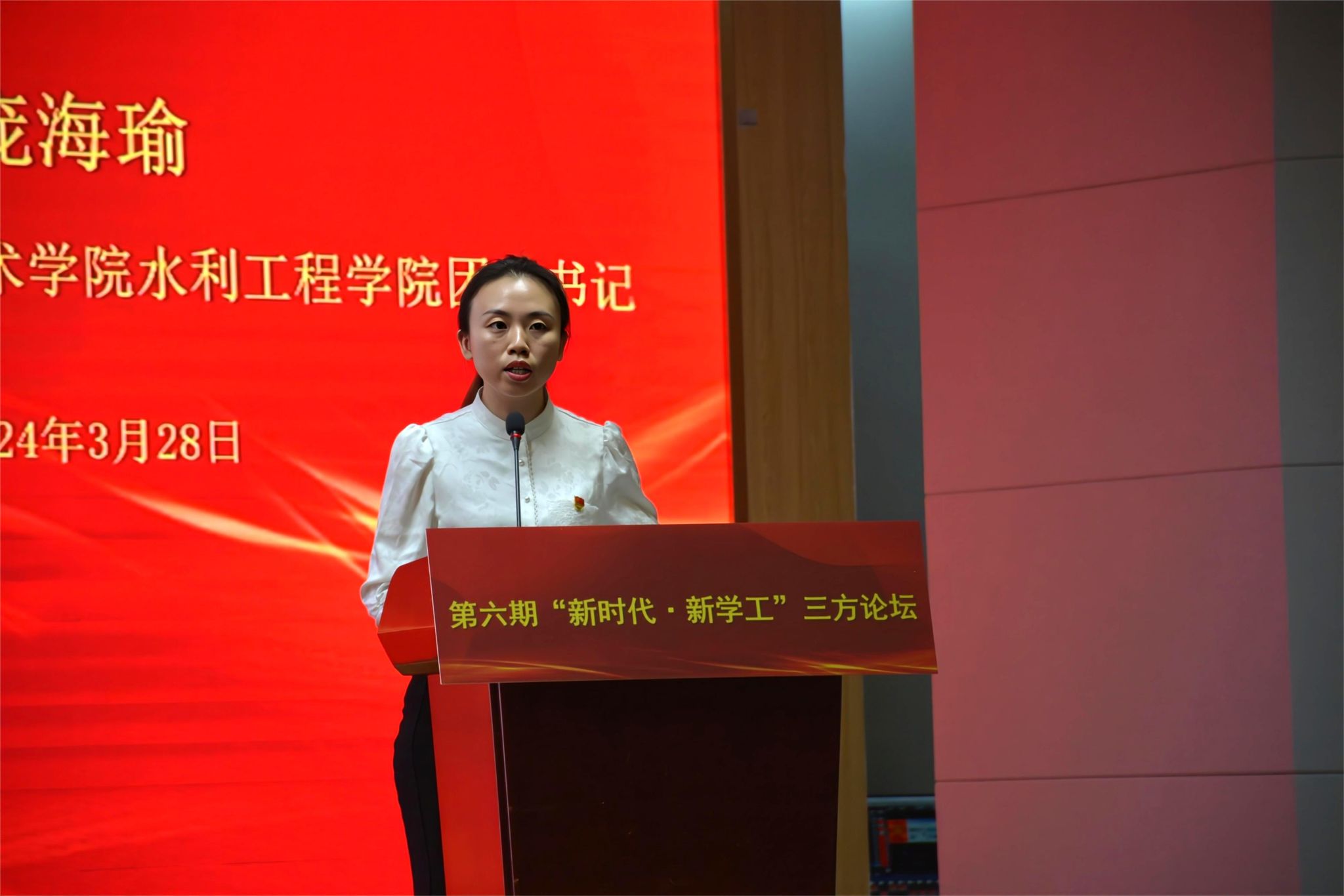 水利工程学院团委书记庞海瑜做代表发言