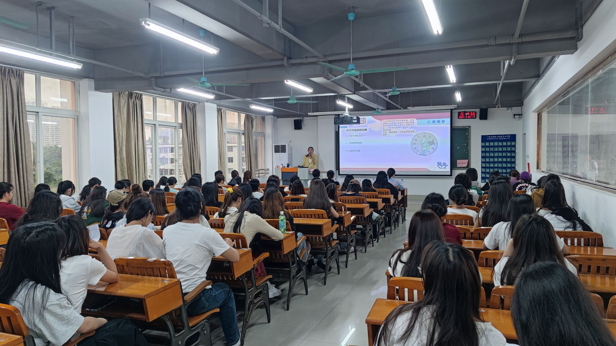 [本网讯]为普及女性健康知识,进一步增强学校女大学生的健康意识和自我保护能力,帮助她们消除成长中的困惑,正确认识自身生理和心理变化特征,树立自信自强、自尊自爱的观念,3月29日下午学工部党支部与广西壮族自治区妇幼保健院在长堽校区第四教学楼7-8教室开展“守护青春 为爱改变”关爱女性健康主题党日活动。