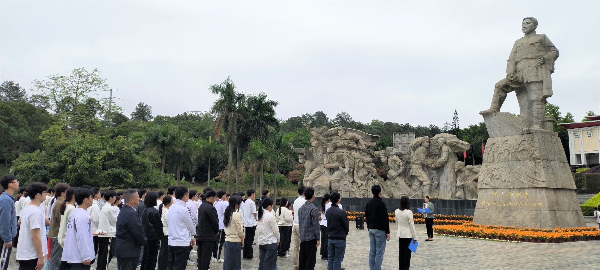 在邓小平领导百色起义龙州起义纪念碑广场,师生们全体肃立,在纪念碑前低头默哀三鞠躬,献上小白花,表达对先烈们的深切哀思和崇高敬意。党委学生工作部部长李晓红为全体师生讲授了一堂生动的“微党课”,号召师生们学习先烈们坚定的理想信念、无私的奉献精神和高尚的道德情操,并将这份红色精神内化于心、外化于行,使之成为我们工作和学习的强大动力。机电工程学院党总支书记杨青带领全体党员重温了入党誓词。在广西革命纪念馆展厅,师生们认真聆听了烈士们的光辉事迹,将革命先烈不畏强敌、不惧艰险,舍生忘死、奋勇向前的精神铭记心中。