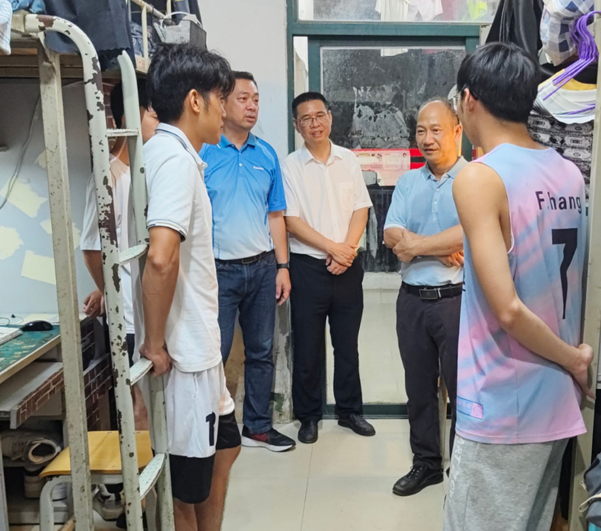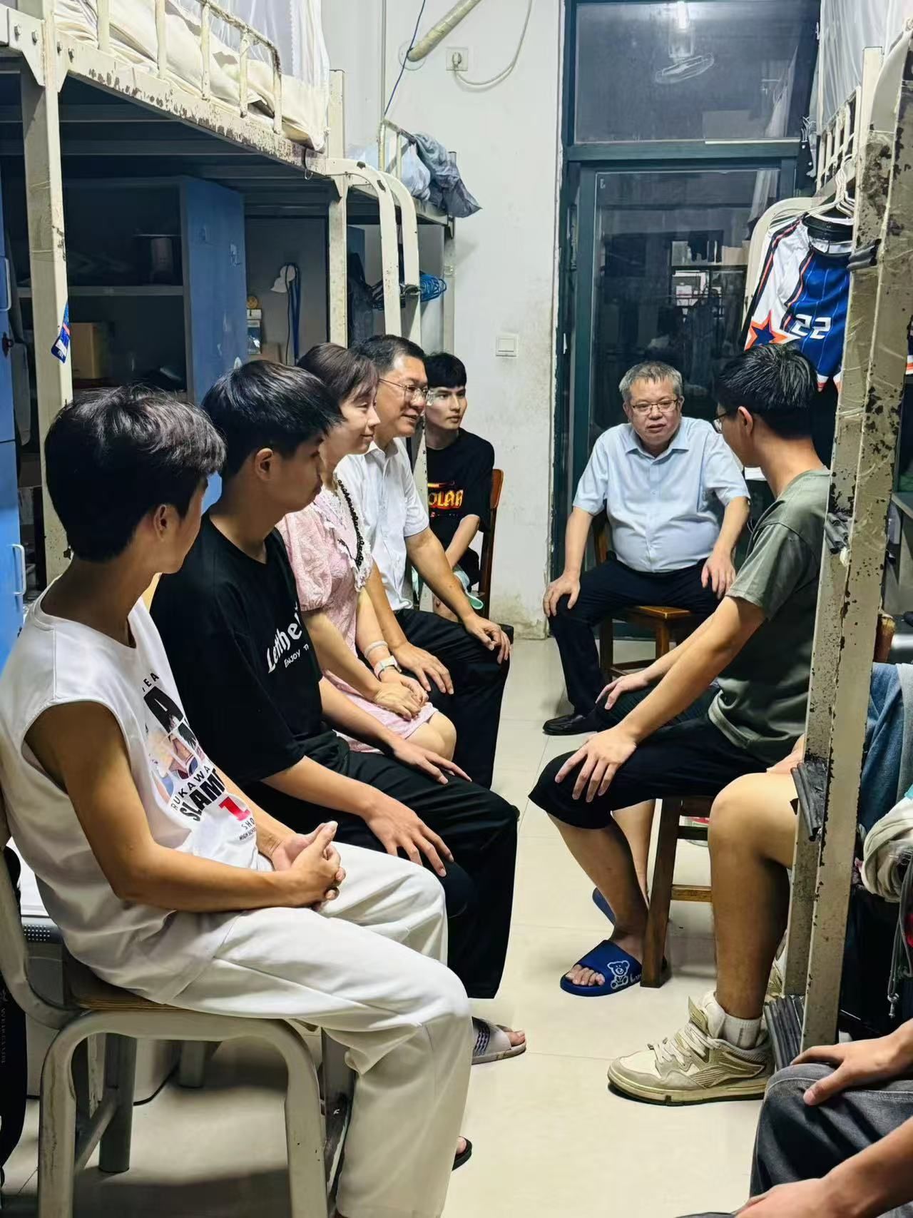 副校长蒋文沛在宿舍与学生交谈