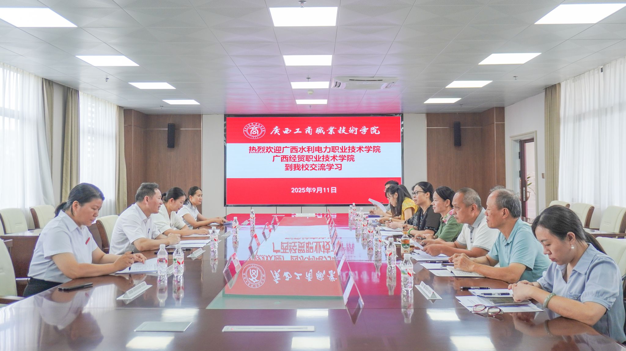 为深化校际工会合作,借鉴先进工作经验,9月11日上午,学校工会副主席石春丽率队联合广西经贸职业技术学院工会副主席谭碧一行9人,赴广西工商职业技术学院武鸣校区开展交流学习活动。活动得到广西工商职业技术学院工会副主席陈春高度重视和热情接待。