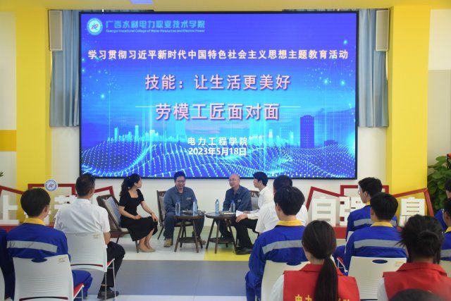 [本网讯]为了深入开展学习贯彻习近平新时代中国特色社会主义思想主题教育,增强学生劳模工匠精神的认同感。5月18日下午,电力工程学院在和园一站式大厅开展“劳模工匠面对面”活动。邀请校友南网战略级专业技术专家李炎、广西电网公司一级技能专家李宝锋返校参加活动,电力工程学院党总支书记罗宇强、副院长谭振宇出席活动。