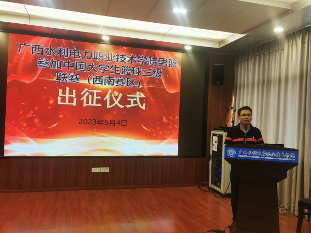 [本网讯]激扬青春当奋楫,扬帆起航在今朝。在五四青年节这个特殊的日子里,学校男子篮球队在图书馆6楼国际交流中心会议室举行中国大学生篮球三级联赛(西南赛区)出征仪式,学校副校长刘存香、通识教育学院院长韦弘、教学督导黄勇标、带队教练及男篮全体队员参加。