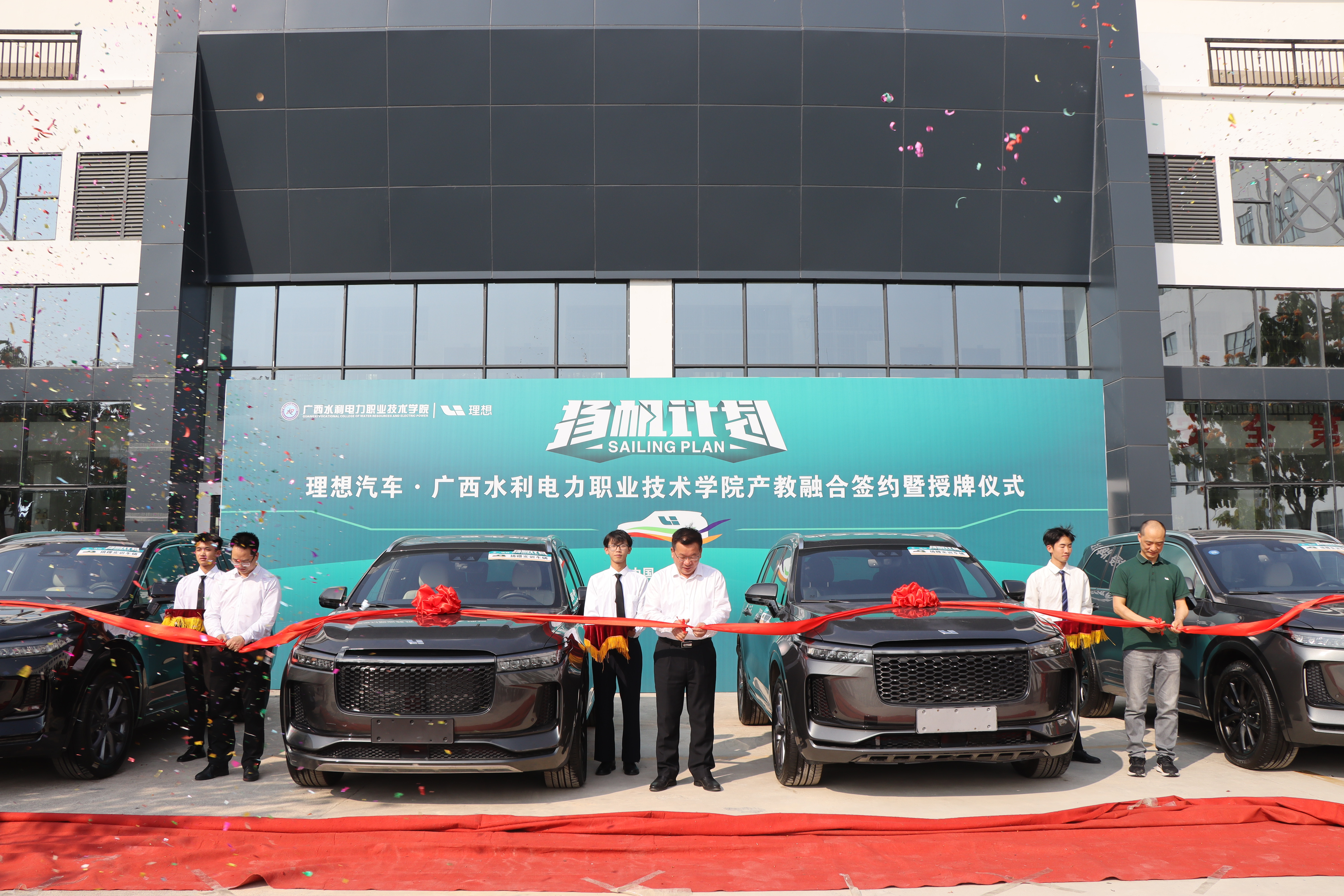 [本网讯]3月22日,学校与理想汽车举行产教融合签约暨授牌仪式。理想汽车售后网络运营负责人翟韶辉、校企合作负责人王健等6人,学校校长李林、副校长周涛及相关部门负责人、“扬帆计划”班授课教师、学员及新能源汽车技术专业学生代表参加了本次会议。
