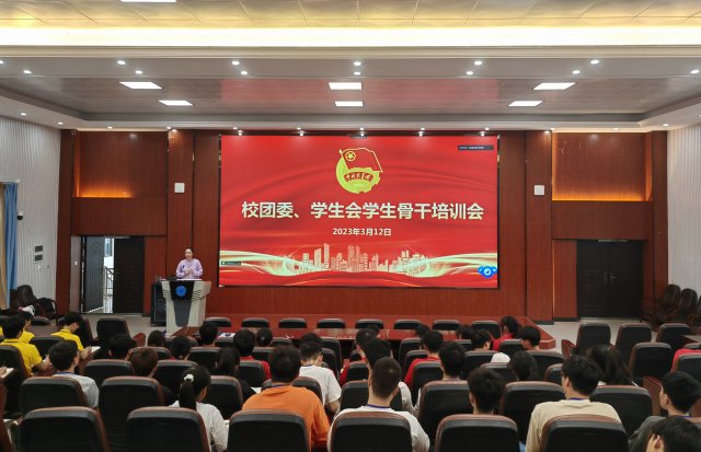 [本网讯]为进一步加强学生干部思想政治教育,强化学生组织建设,更好地发挥学生骨干的模范带头作用,3月12日,校团委在里建校区教学楼学术报告厅召开新学期学生骨干培训会。团委书记助理梁卉为校团委、学生会全体学生干部作培训。