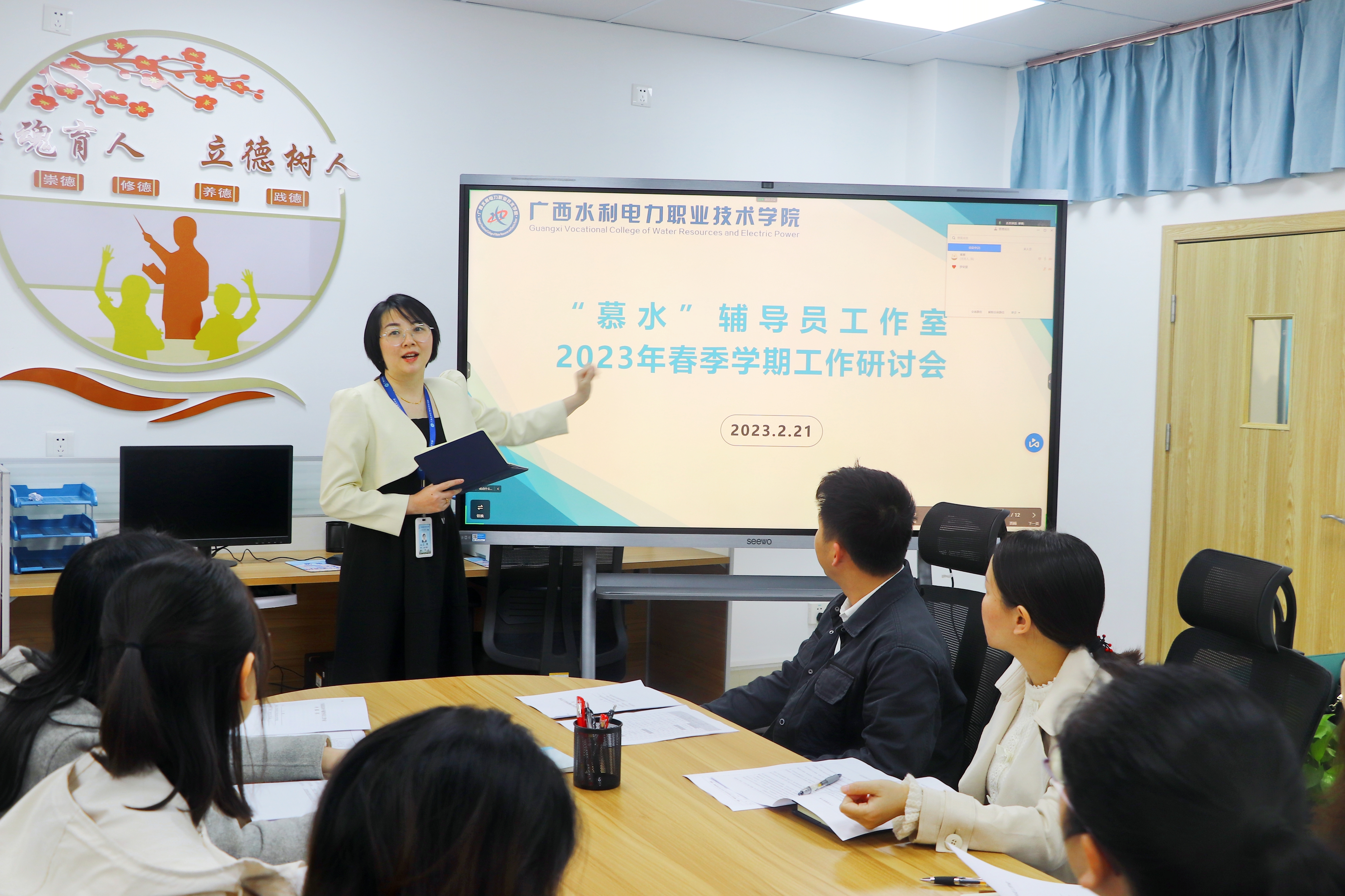 [本网讯]为进一步增强辅导员的职业能力和育人水平,持续推进辅导员工作室的发展建设,2月21日,“慕水”辅导员工作室在里建校区“一站式”学生社区召开2023年春季学期工作研讨会。水利工程学院党总支书记班兰美以及工作室全体成员参加会议。