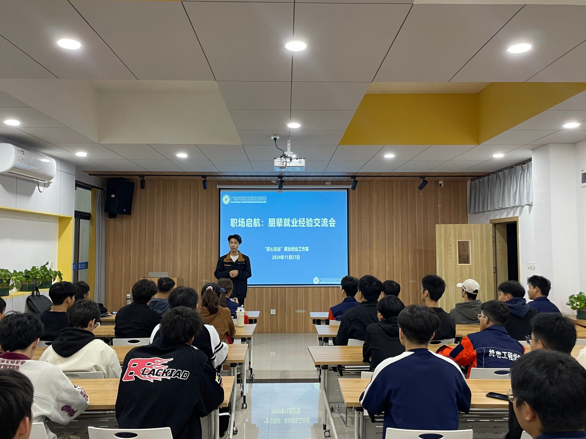 [本网讯]为充分发挥优秀党员的引领和示范作用,进一步加强学生的思想引领和成长指导,11月27日,机电工程学院学生党支部在里建校区“和园”一站式学生社区多功能报告厅举办了一场以“朋辈引航 慧聚成长”为主题的分享会。分享会由学生党支部书记、“匠心志远”就业创业工作室负责人肖芬主持,学院师生党员、入党积极分子等80余人参加。
