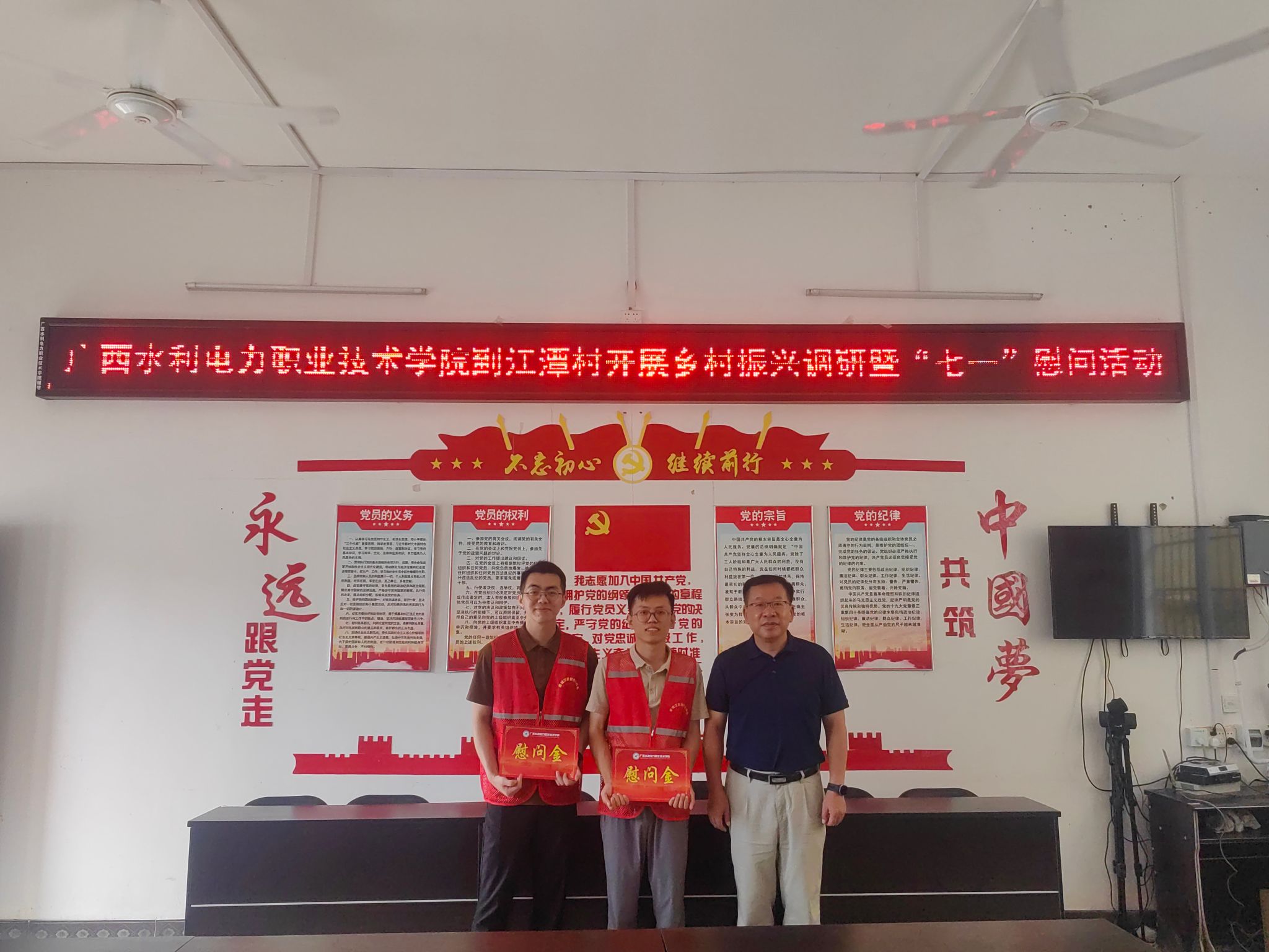 [本网讯]7月2日,学校党委书记李林率帮扶干部一行赴金城江区九圩镇江潭、那余、肯堂、北隘、高合、岜林等6个定点帮扶村开展乡村振兴调研暨“七一”慰问活动。金城江区党委副书记韦晖、金城江区党委常委、副区长、工作队队长张海明、九圩镇党委书记田东鸣、九圩镇镇长韦竣文陪同调研。