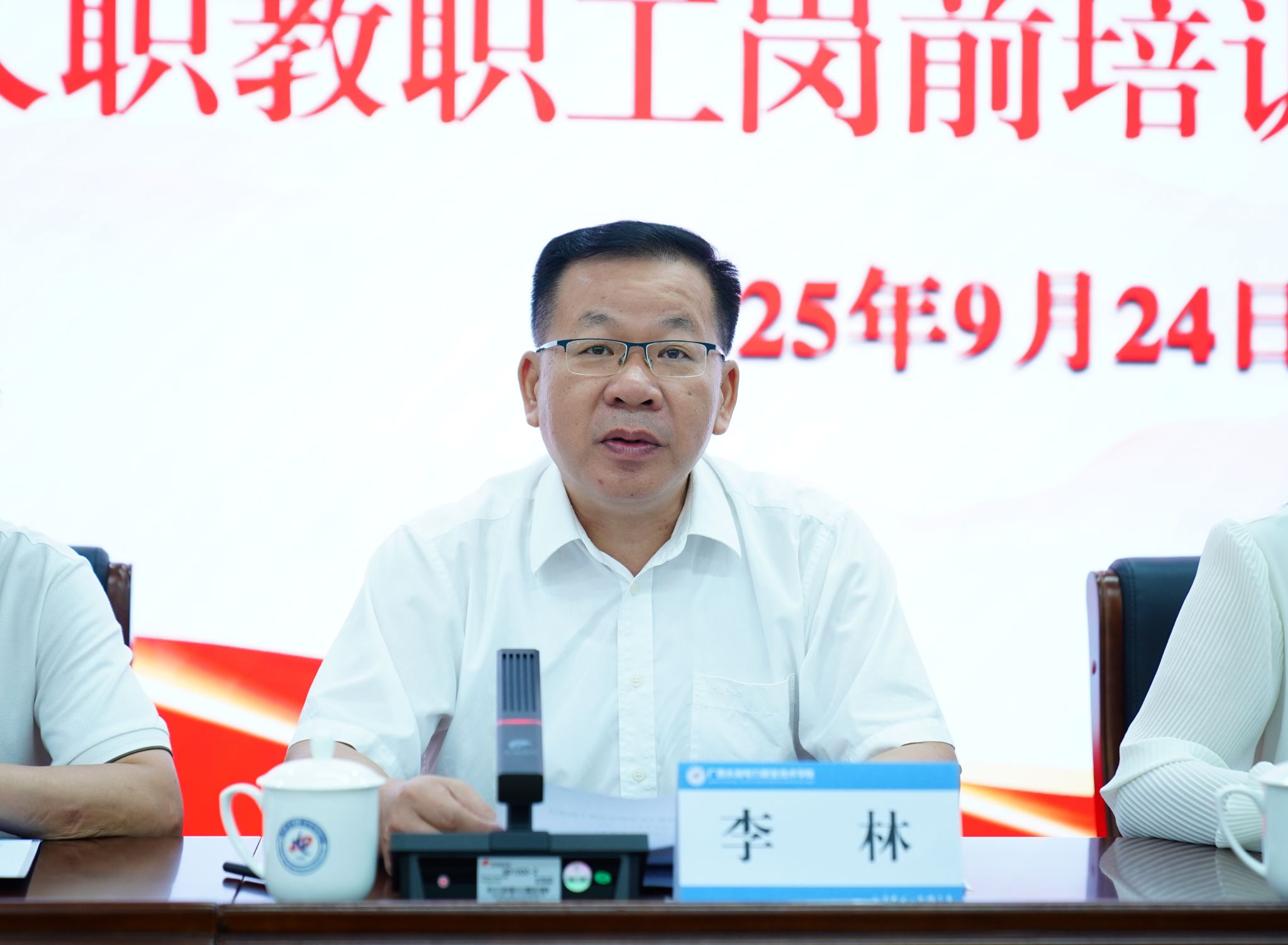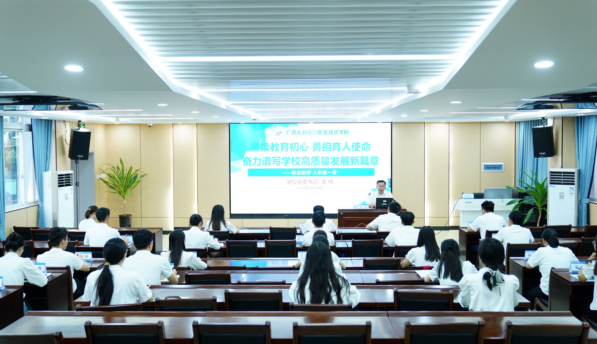 [本网讯]9月24日上午,学校2025年度“雏雁项目”新入职教职工岗前培训班开班仪式顺利举行。学校党委书记李林出席仪式并讲话,仪式由党委副书记莫海燕主持。