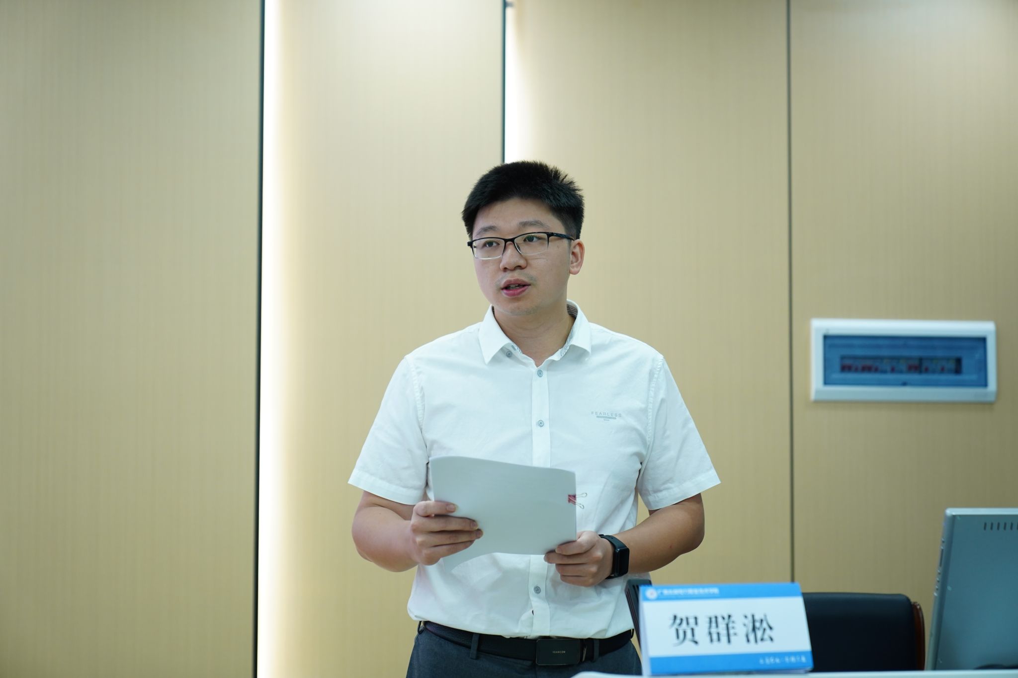 随后,新入职教职工进行了入职宣誓并签署《师德承诺书》。电力工程学院贺群淞博士作为新入职教职工代表发言。他从“立德树人、深耕教学、科研创新、虚心学习”四个维度,表达了与学校同频共振、共谋发展的信心与决心,希望新入职教职工将个人成长融入学校发展蓝图,以实干实绩为学校注入新动能。