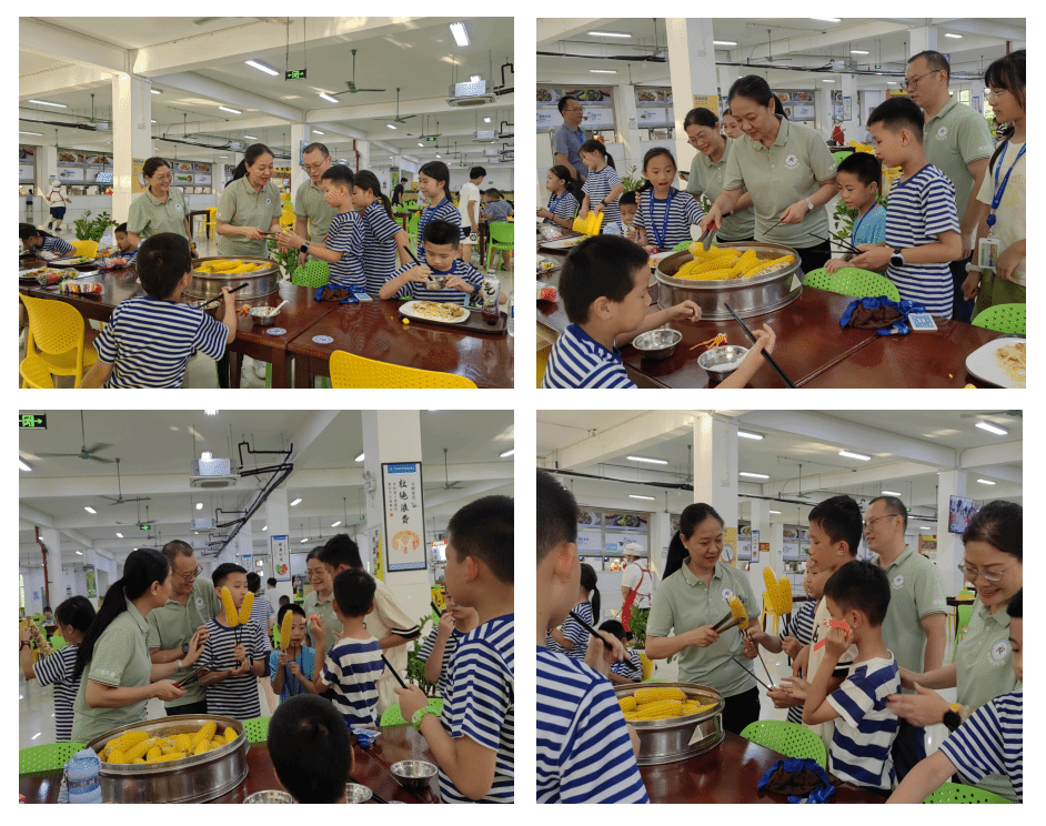 采摘结束后,师生们一起将从劳动教育基地采摘的玉米煮熟,送到参加学校夏令营研学小朋友们的餐桌上。参加伟德暑期研学的南宁市民主路小学学生黄筱梵开心地说:“哥哥姐姐们种的玉米真好吃!我希望以后也能有机会参加这样的劳动,感受劳动的快乐!”
