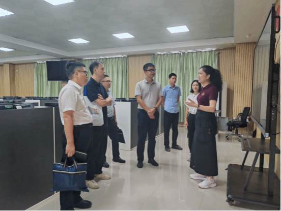 [本网讯]10月11日下午,全区住房城乡建设领域培训机构现场核验与调研工作组(第二小组)一行莅临土木建筑工程学院,开展培训资质核验与专项调研工作。工作组由广西壮族自治区住房和城乡建设厅培训中心副主任王英豪带队,厅勘察设计与消防监管处四级调研员陆绍清、厅培训中心注册管理科科长敖德金、广西中信恒泰工程顾问有限公司机电BIM负责人黄超烨等住建领域资深专家共同组成。本次核验重点围绕学院培训办学许可、组织机构建设、师资队伍配置、培训及办公场所保障、教学设备运维、实操考核场所建设、培训管理制度完善等核心维度展开,并重点对学院新申报的 “建筑信息模型技术员” 工种进行现场考察和评估。土木建筑工程学院院长唐善德、实训中心负责人覃凤阳及实训教师代表全程陪同参与。核验调研工作以座谈会与实地核查相结合的方式,全面深入了解学院培训工作的实际情况与建设成效。