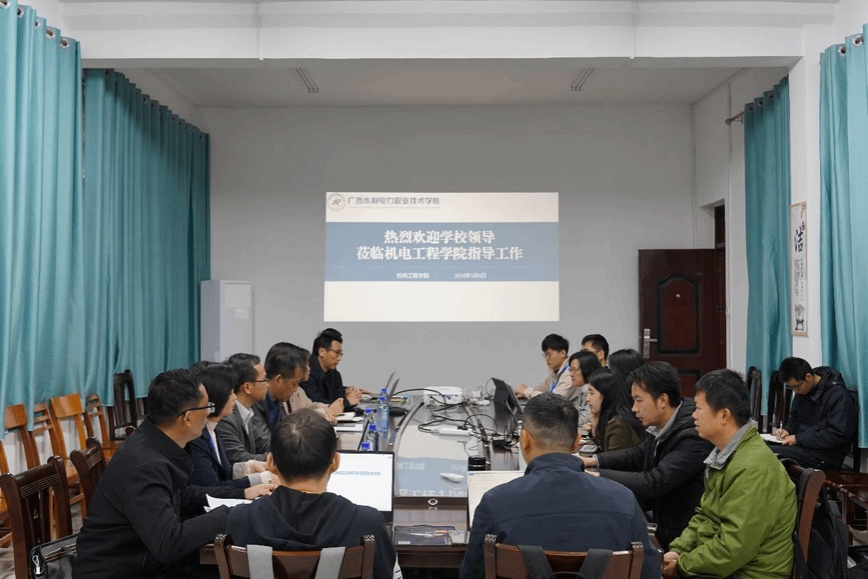 [本网讯]3月8日上午,学校党委副书记侯宗毅带队深入机电工程学院指导自治区职业教育教学创新团队申报工作,人事处处长区倩如、副处长巫德富及水利工程学院院长余金凤、土木建筑工程学院院长吴美琼作为专家到会指导,机电工程学院院长陆尚平、副院长陈韶光、副院长季锐以及参与申报职业教育教学创新团队工作的老师参加会议。
