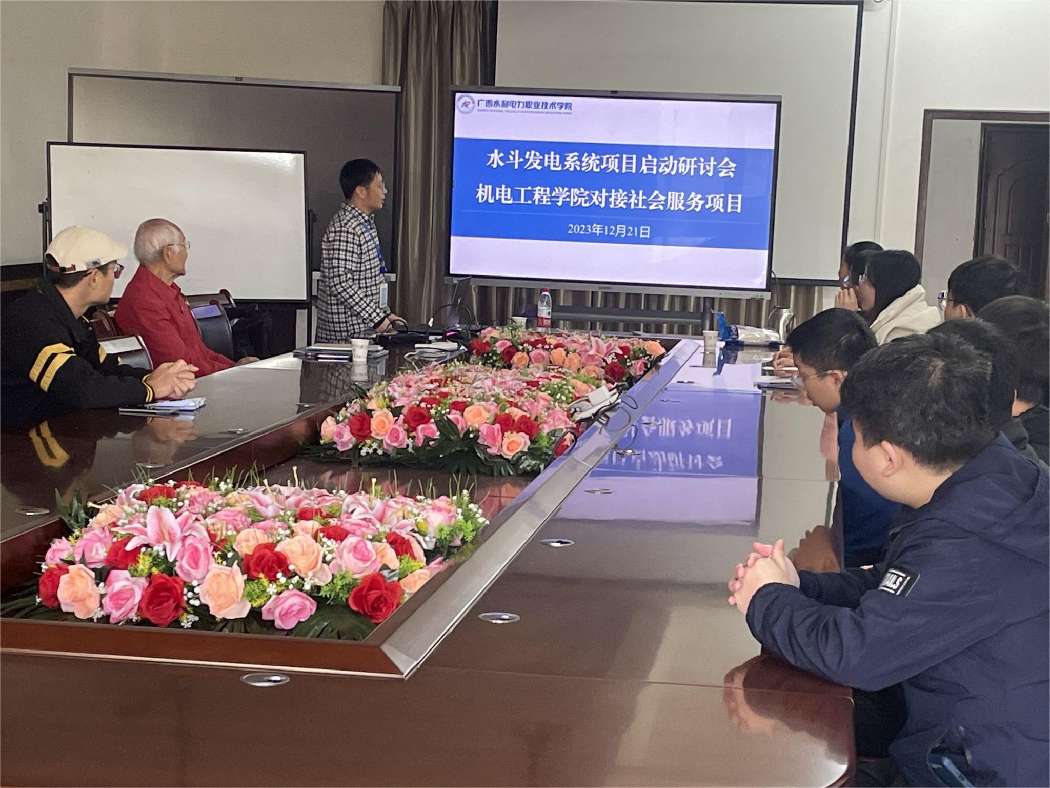 12月21日上午,机电工程学院在里建校区综合实训楼会议室开展“水斗发电系统项目”启动研讨会,项目发起人陈景辉老先生、机电工程学院专任教师、辅导员及学生代表参会。