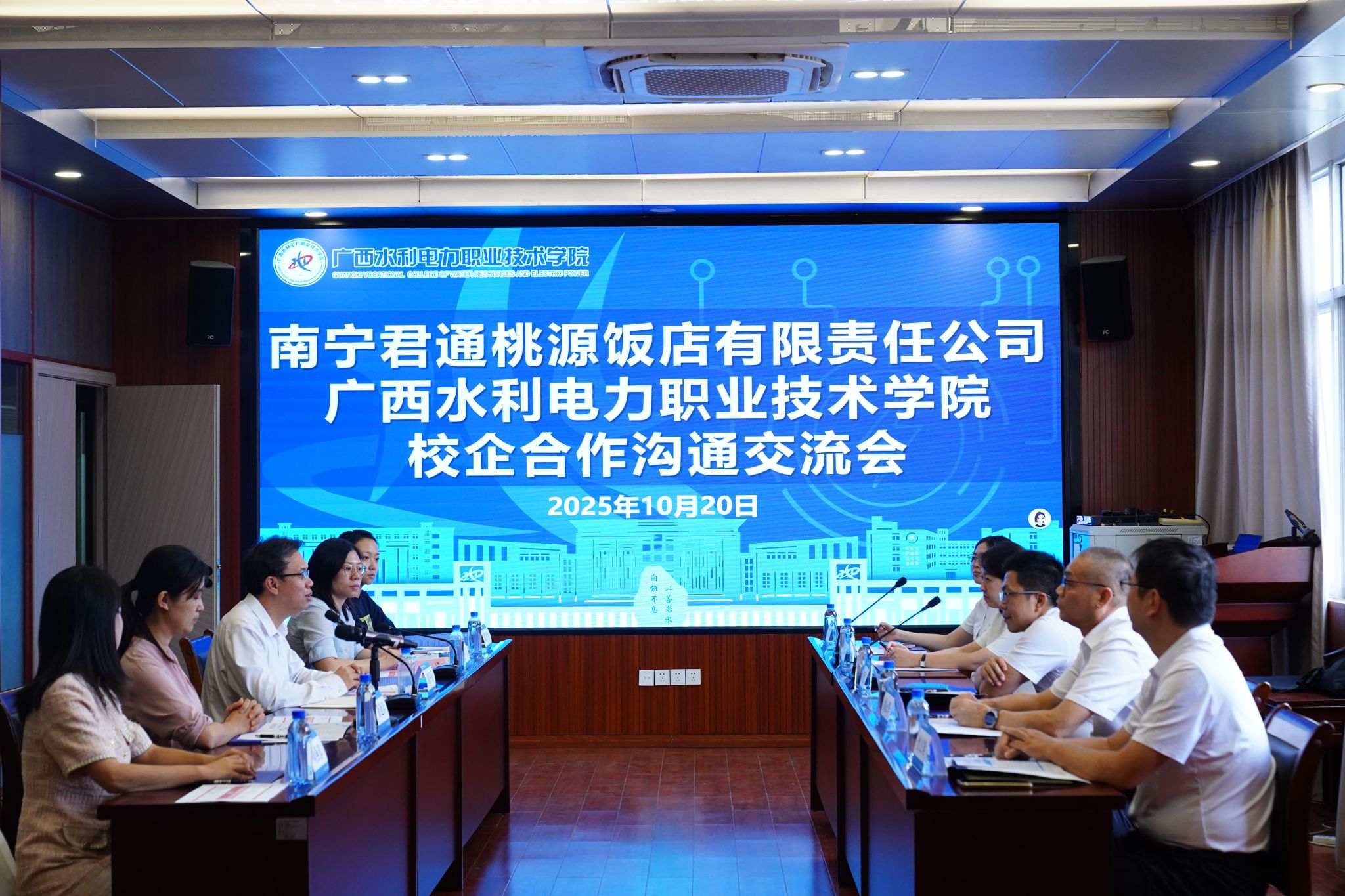[本网讯]为深化产教融合,探索校企协同育人新路径,10月20日下午,南宁君通桃源饭店有限责任公司总经理龚爱群一行赴校交流访问。学校校长刘存香出席交流会。