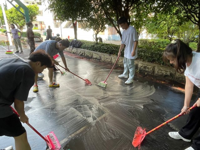 此次活动旨在培养学生无私奉献、积极参与劳动的精神,通过“打扫篮球场”活动,营造良好的校园文化氛围。培养同学们树立“文明之风,从我做起”的文明意识,提高同学们的校园服务意识,丰富同学们的课余生活。通过此次活动,同学们也明白了“劳动最光荣”这五个字的深刻意义。打扫完后,老师与同学们一起合影留念。