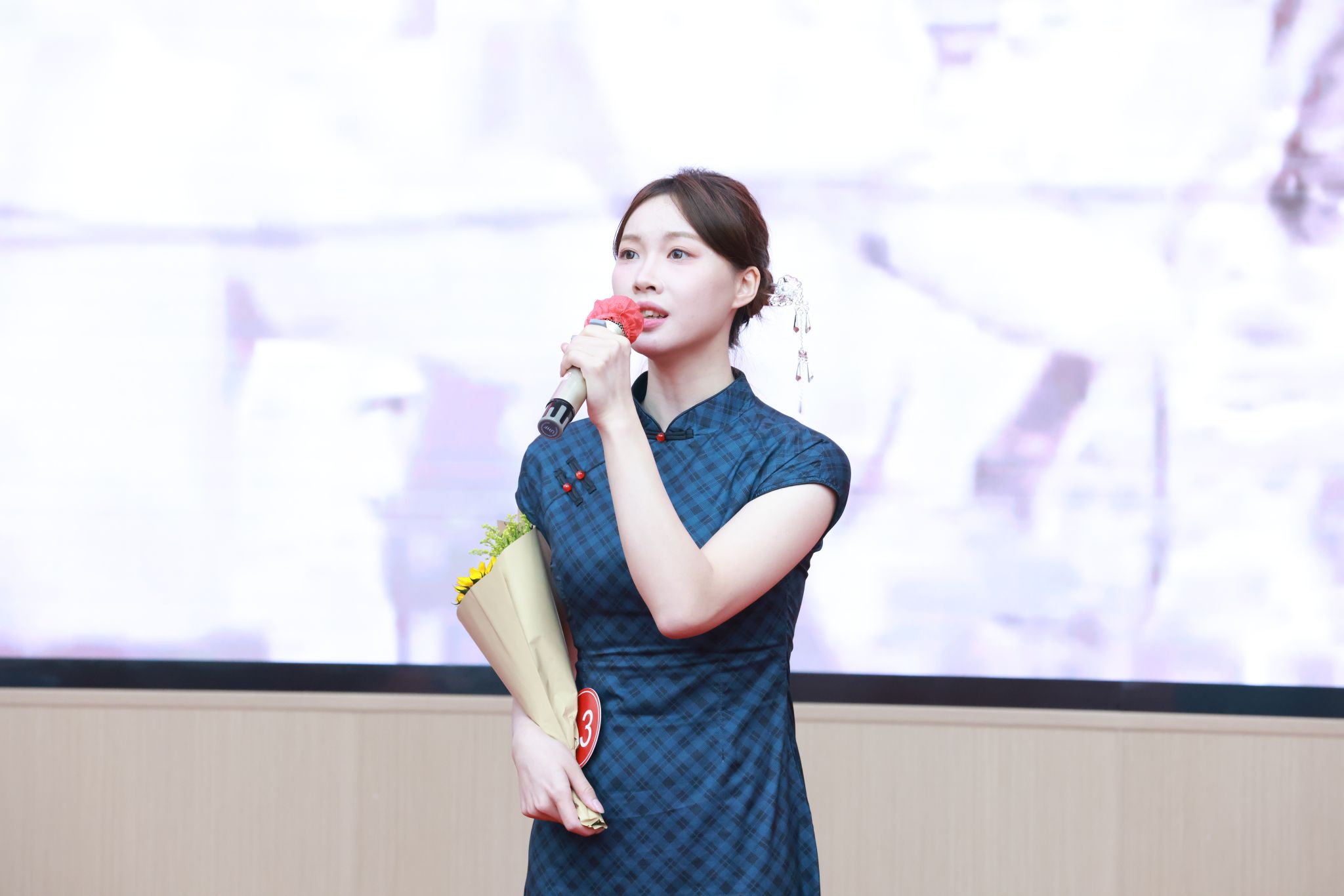 在比赛现场,她以深情的朗诵、铿锵的旋律和富有感染力的舞台表现将《民族的丰碑》中十四年抗战中华儿女的英勇事迹生动再现,让全场听众真切感受到了作品里的家国情怀。随后,评委们从朗诵技巧、舞台表现、氛围效果等方面进行专业评审,最终给出“情感真挚、突出,让历史故事有了‘青年温度’”的评价,岑圆同学凭借这份独特的感染力荣获三等奖。