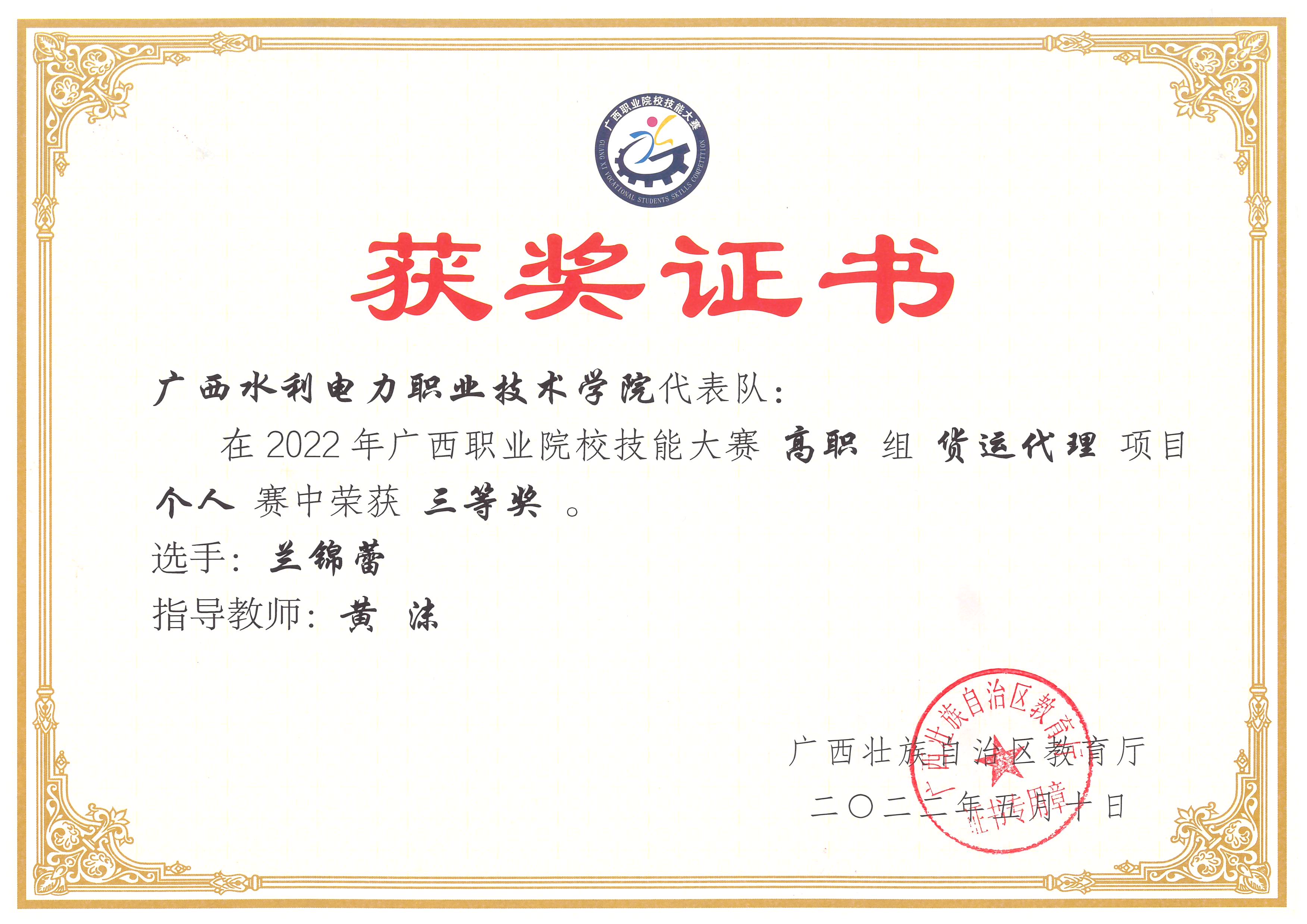 2022年广西职业院校技能大赛高职组货运代理项目个人赛三等奖