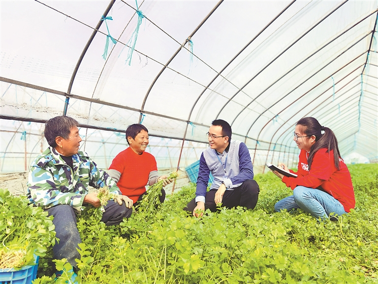 江苏省高邮市纪委监委将贯彻落实党的二十大各项部署要求同职能职责结合起来,把整治群众身边不正之风和腐败问题摆在突出位置。图为该市纪检监察干部在三垛镇老瓦庄村蔬菜种植基地了解惠农补贴发放情况。谭倩 摄