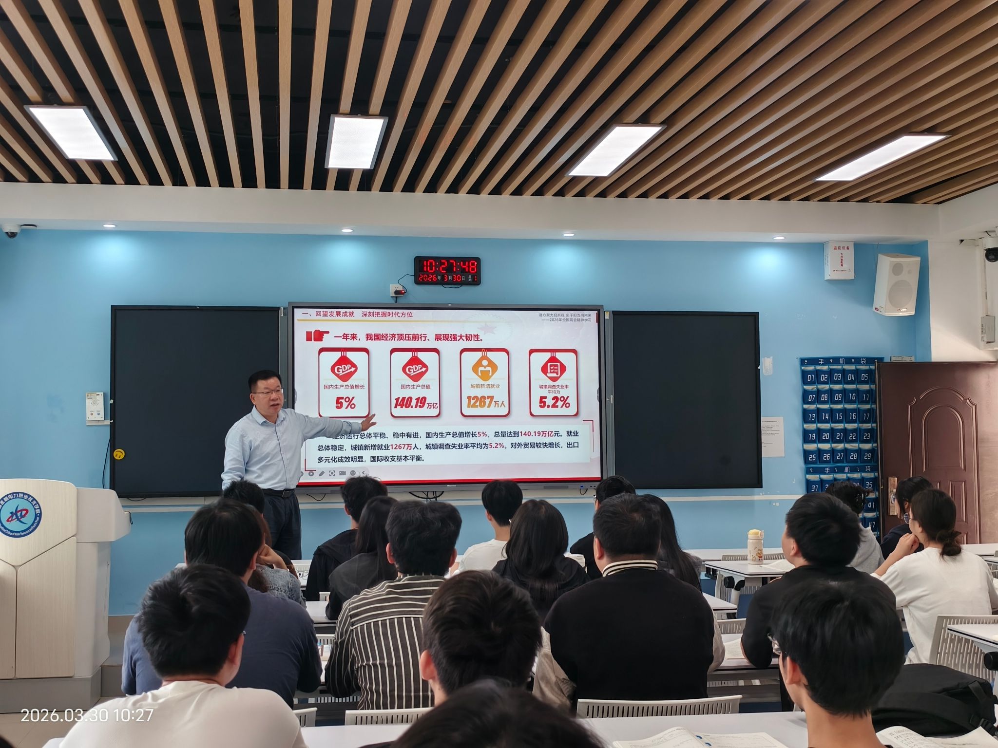 [本网讯]3月30日,学校党委书记李林、校长刘存香深入思政课堂,为学生讲授“形势与政策”课。本次授课以《凝心聚力启新程,实干担当向未来——2026年全国两会精神学习》为主题,分三部分系统解读全国两会精神。第一部分回望2025年和“十四五”时期的发展成就,客观分...