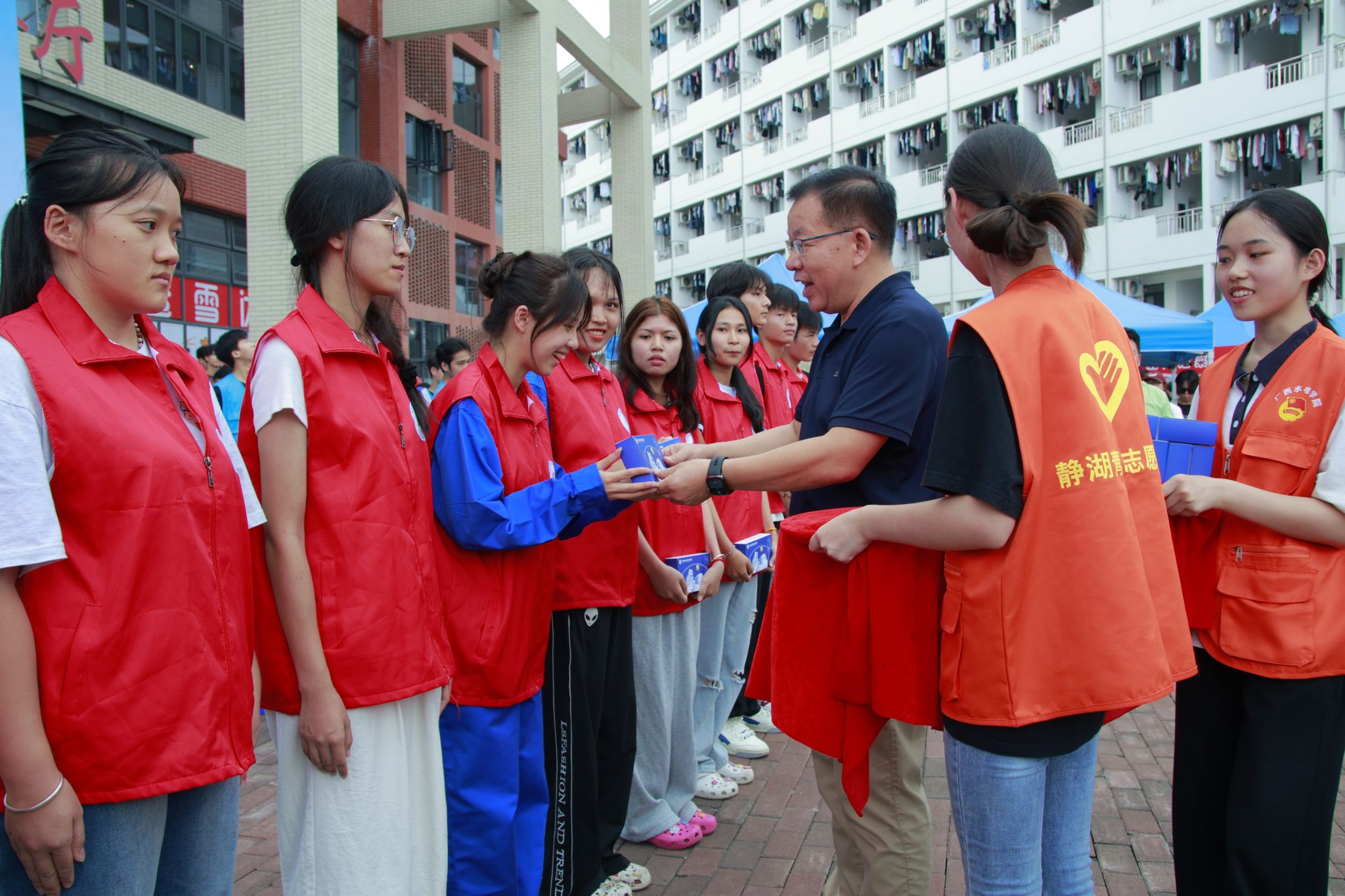 [本网讯]9月28日,学校在长堽、里建两校区同步举办迎中秋系列活动,全校师生欢聚一堂,共赴一场兼具文化韵味与青春活力的节日盛宴。学校党委书记李林、党委副书记莫海燕、副校长周涛、总会计师潘念萍参加活动。活动伊始,学校领导在食堂前向学生代表分发月饼盲盒,为...