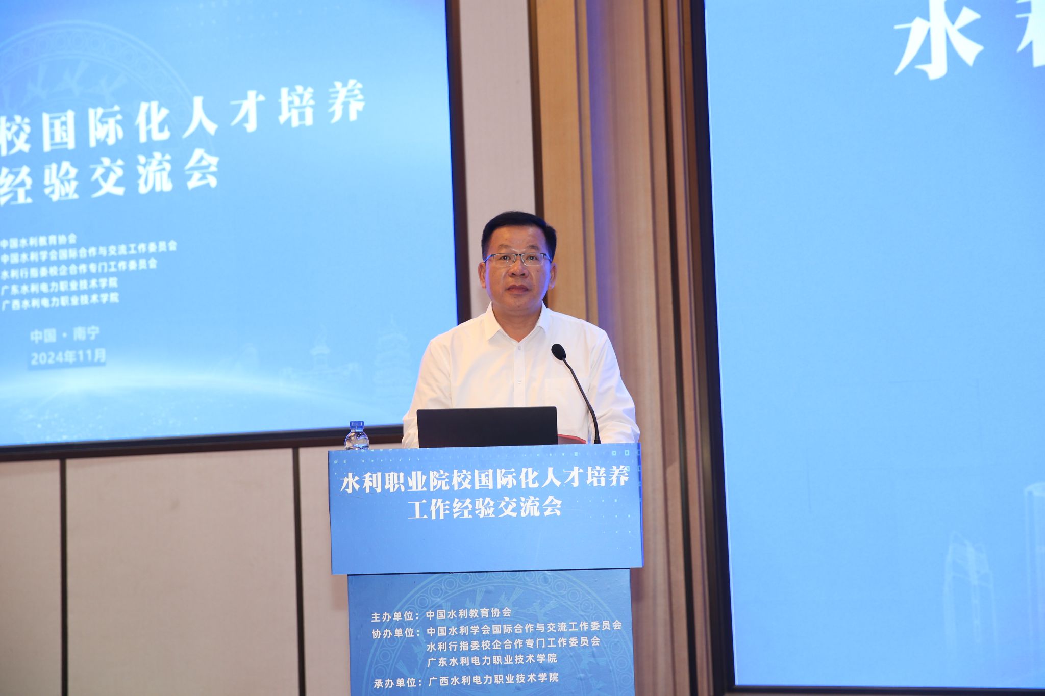 On November 19, the Experience Exchange Meeting on International Talent Cultivation in Water Resources Vocational Institutions officially commenced. Hosted by the China Water Resources Education Association and organized by our college, the event saw the attendance of over 150 experts and leaders from enterprises and institutions within the national water resources sector. Notable attendees included Zhang Mingjun, President of the China Water Resources Education Association; Wang Shaohua, Vice President and Secretary-General; Li Jianwen, Deputy Director and First-Level Inspector of the Water Resources Department of Guangxi Zhuang Autonomous Region; as well as Li Lin, President of our college.